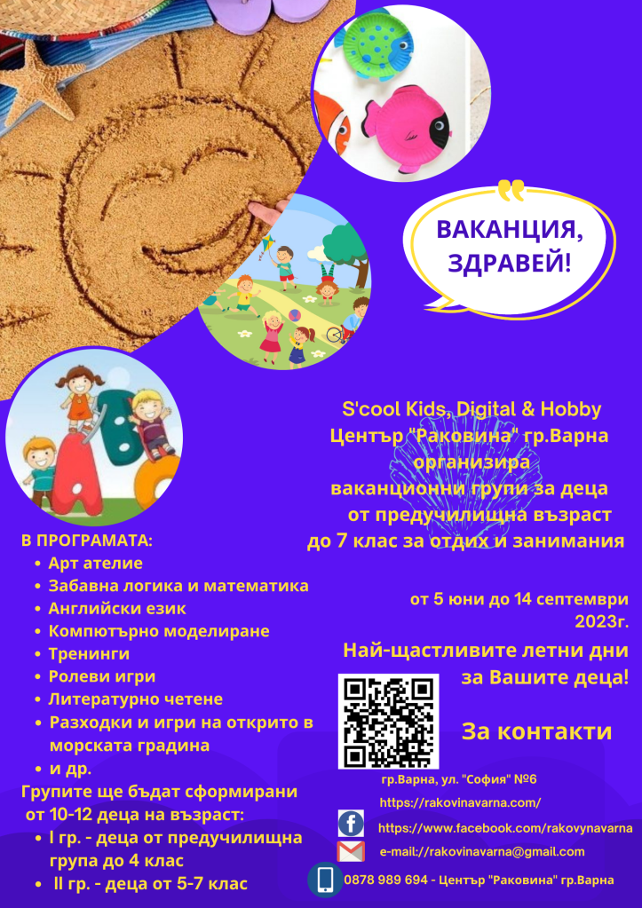 Ваканционни групи за деца от предучилищна възраст до 7 клас за отдих и занимания